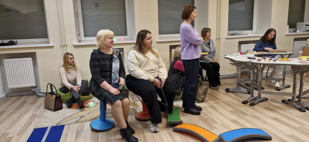 Apie įtrauktį ir pagalbos mokiniui sistemą kalbėjo Modesta Motijauskienė, direktoriaus pavaduotoja ir specialioji pedagogė, bei Ada Čaraitė, socialinė pedagogė. Savo patirtimi dalijosi ir technologijų mokytoja Kristina Auglienė, pristatydama kūrybines komandinio darbo užduotis technologijų pamokose.