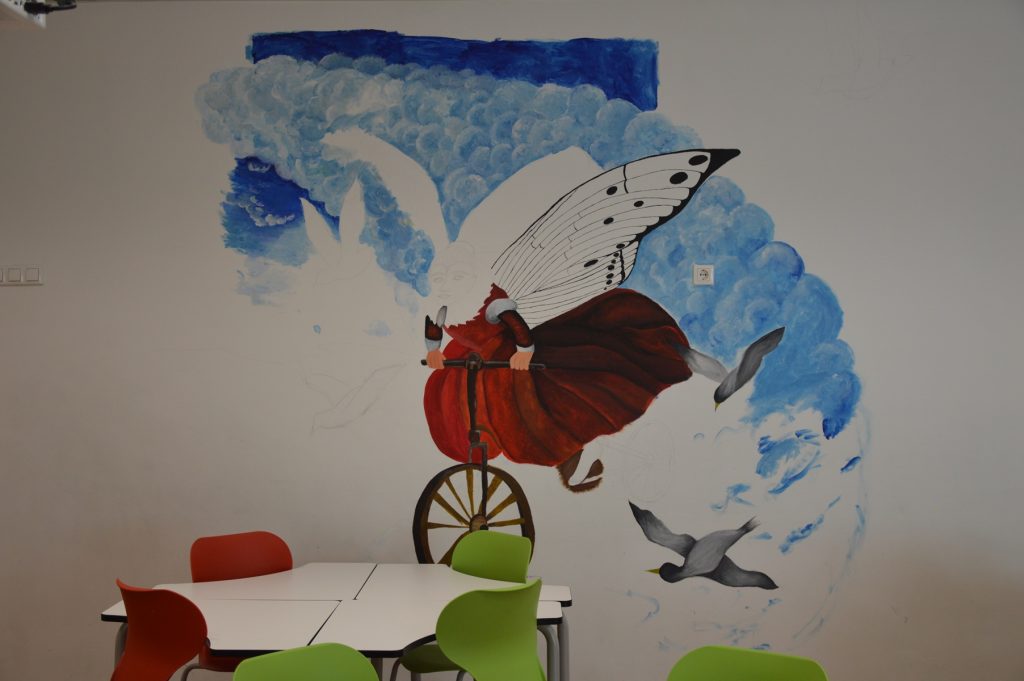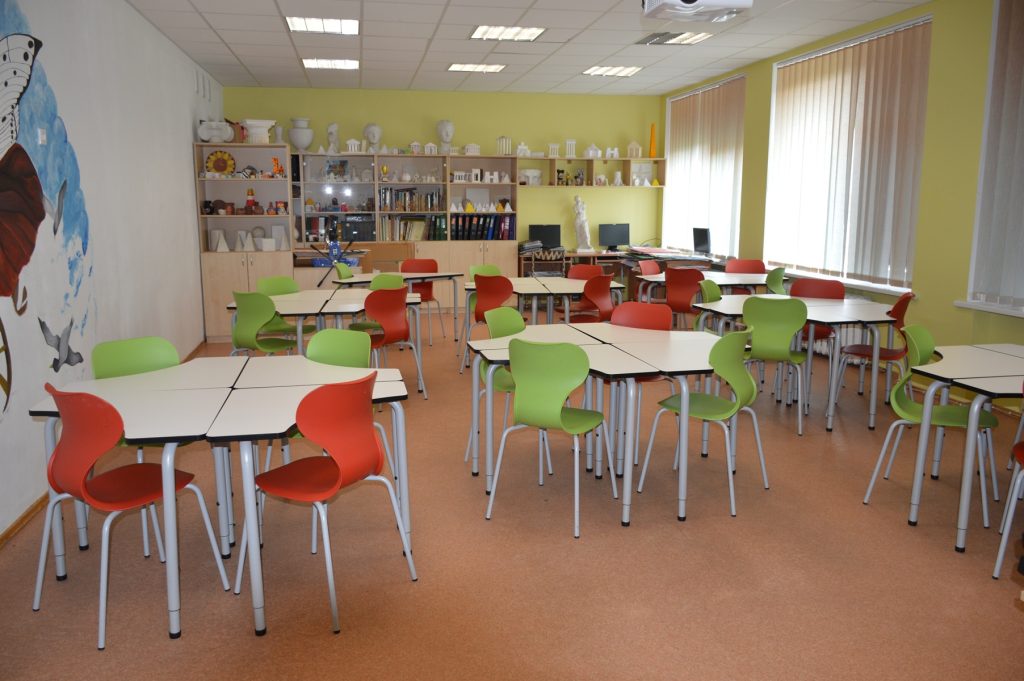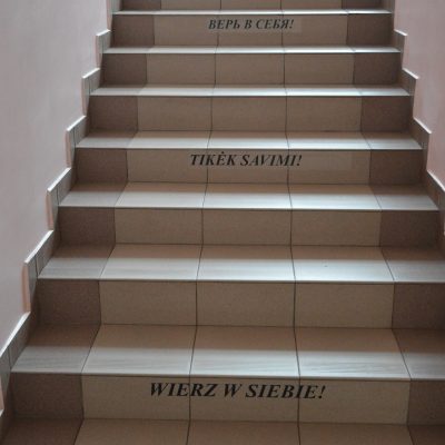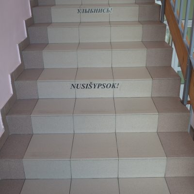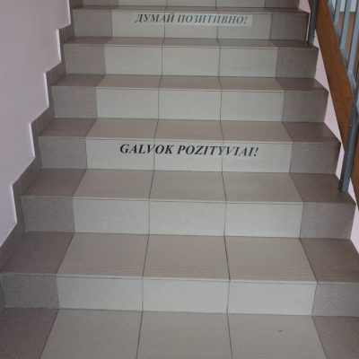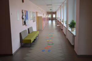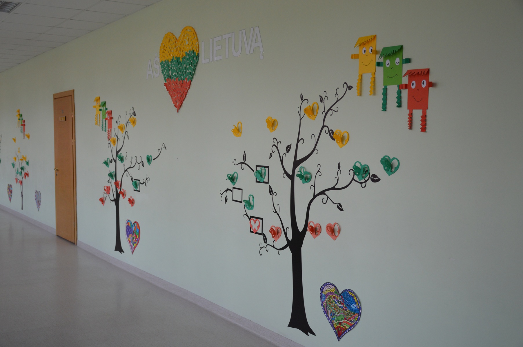 Pradinių klasių koridoriuose pertraukų metu vaikai linksmai šokinėja sukurtu pėdų takeliu. Judriausiame koridoriuje visiems prieinamas ūgio matuoklis. Tai dailės mokytojos ir mokinių kūrybinis darbas.