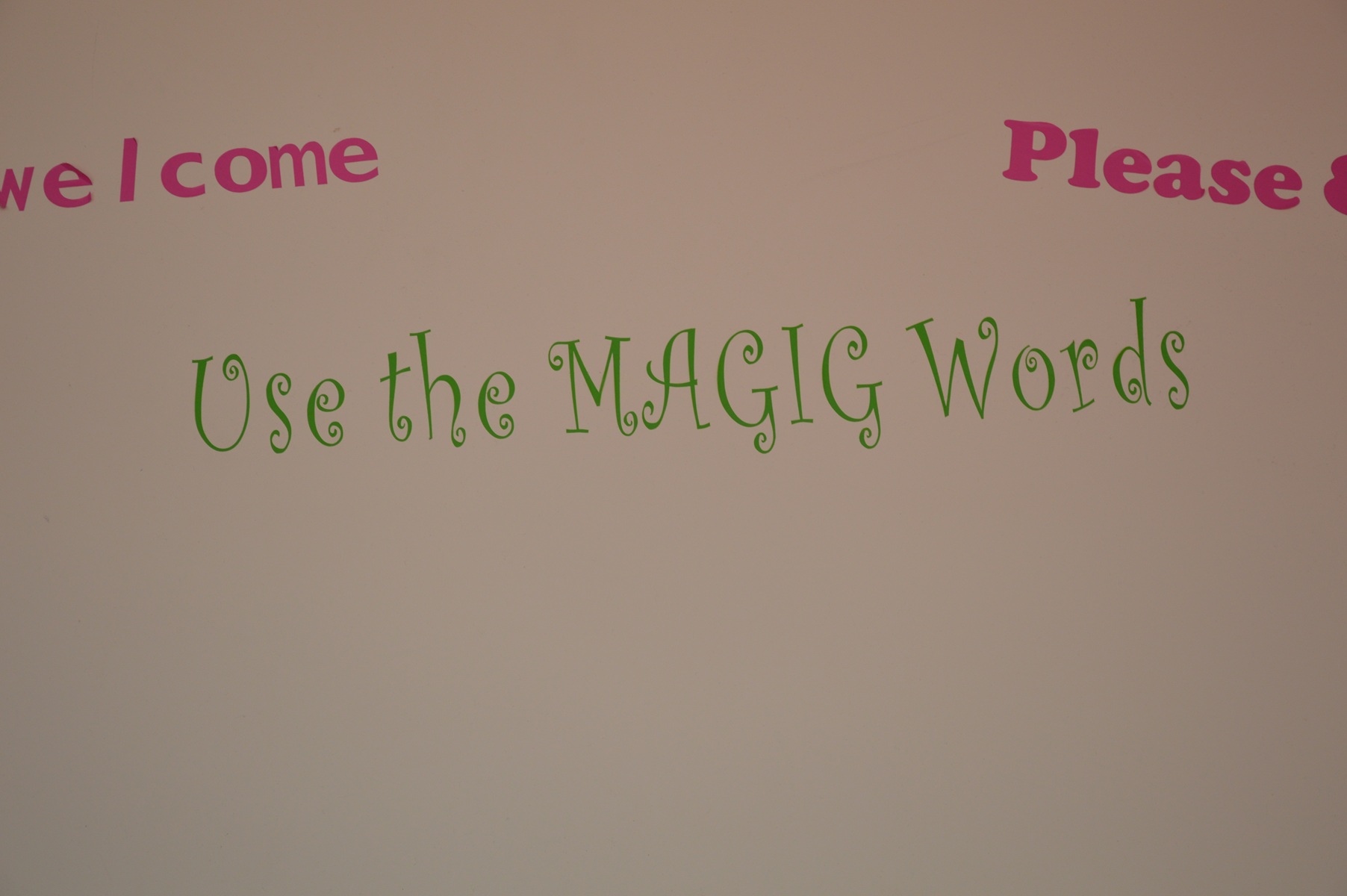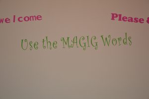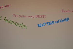 Užsienio kalbų koridoriaus pradžioje ant sienos esantys užrašai labai praturtina anglų kalbos žodyną.