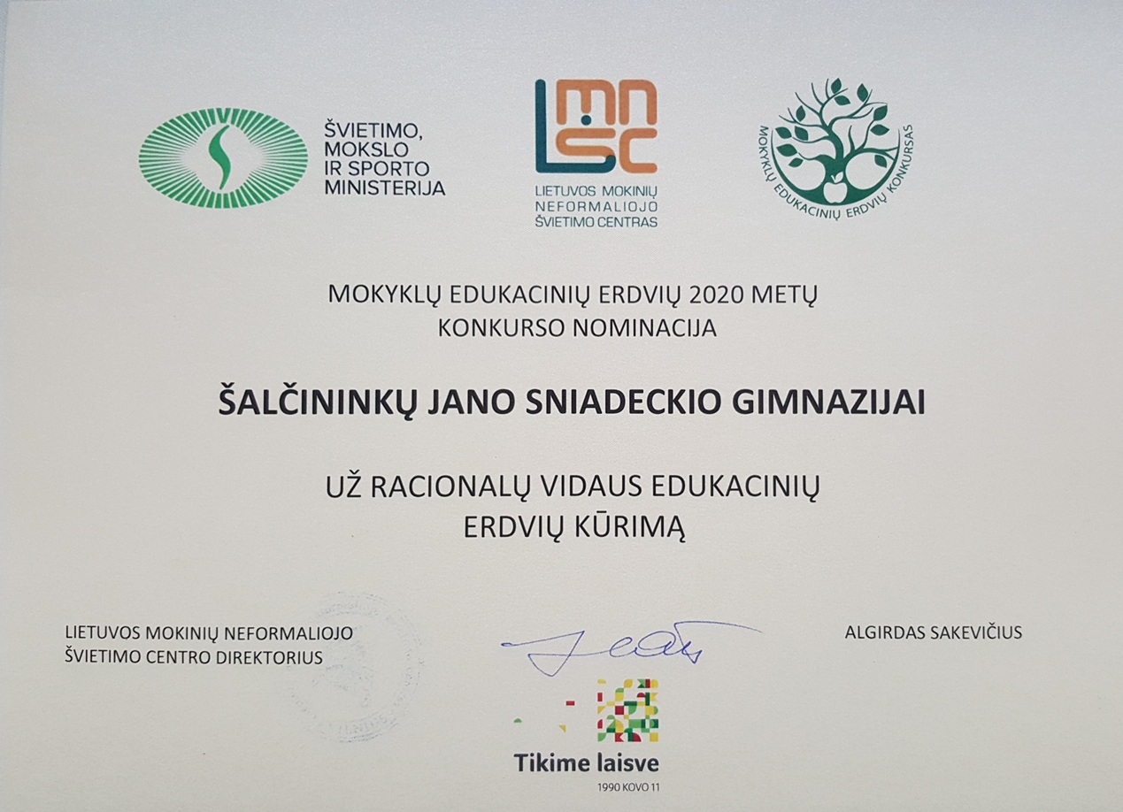 Šiuolaikinis mokymas neturi vykti tik klasėse. Dalykinė veikla gimnazijoje tęsiama koridorių erdvėse. Matematikos kabinetų koridoriuje ant sienos patalpinta matematikos formulių dekoracija, nuolat primenanti mokiniams pagrindines matematikos formules.