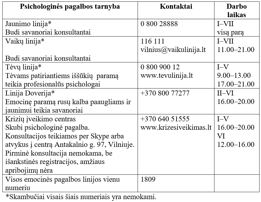 Kreipkis į gimnazijos psichologą, kai:
